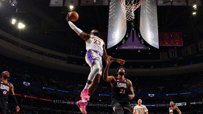 東契奇背身單打命中,艾頓大帽埃奇庫姆,喬治2罰全中,詹姆斯高位跳投取分為湖人止血。喬治助攻德拉蒙德暴扣還以顏色,詹姆斯轟進三分球。馬克西拋投不進,雷迪克請求暫停,格萊姆斯轟進遠投,恩比德中距離得手,費城追平比分。詹姆斯又中三分球,恩比德單打不進,埃奇庫姆補籃未果,詹姆斯中距離得分,湖人領先5分鎖定大局。
