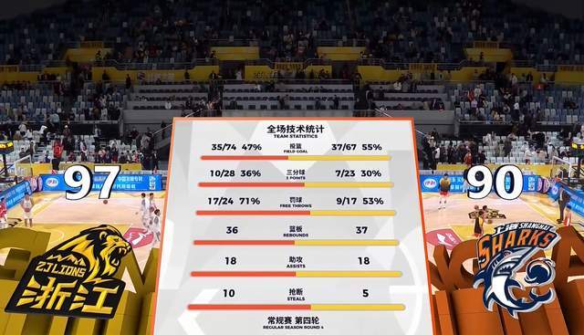 廣廈男籃盡管取得了勝利,但贏得十分不易。數(shù)據(jù)給出了最好的答案,廣廈男籃此役命中率只有47%,而上海隊(duì)55%。三分球命中率36%,這才是贏球的關(guān)鍵所在,上海隊(duì)三分球命中率只有30%。而籃板球?qū)用妫?6-37,還不如對(duì)手呢。