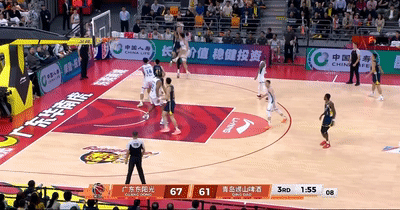 末節單外援決戰,韋瑟斯龐還是沒回來,米奇出任先發,開局奎因再進高難度高打板突破并且還制造了一次搶斷,8分39秒徐杰拋投打進后再飚進一記三分,廣東領先再次來到11分。