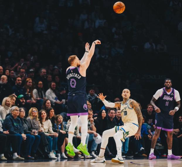 好在其他隊友狀態在線,迪文岑佐此役手感滾燙,憑借11投7中的效率,打出了18+5+4+2的全能表現,法國高塔戈貝爾則砍下了11分和18個籃板的兩雙,替補登場的里德和香農得分也全部上雙,幫助森林狼捍衛了主場。