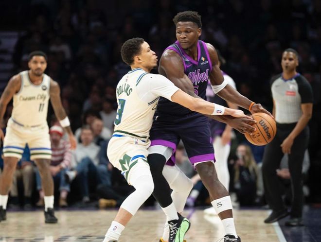 北京時間12月22日,NBA常規(guī)賽繼續(xù)展開,森林狼主場103-100逆轉(zhuǎn)擊敗雄鹿,取得2連勝。