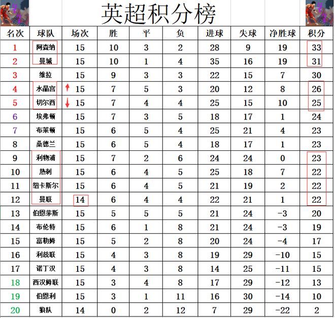 積分榜方面,阿森納近段時間無力贏硬仗,被曼城不斷縮小差距,本輪過后阿森納就只剩下2分優(yōu)勢了。近段表現(xiàn)更差的切爾西排名更是一跌再跌,從第2跌到第4,今天水晶宮絕殺贏球后,更是將切爾西擠出前4。利物浦被布萊頓超過后,又回到第9的位置。