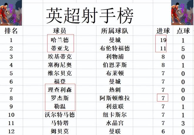 射手榜方面,哈蘭德19球高居榜首,蒂亞戈11球位列第2。埃基蒂克,塞梅尼奧8球并列第3。羅杰斯今天梅開二度后,追上福登,理查利森,勒溫等人7球剛好擠入前十。姆貝莫缺陣,還是差前十1球。